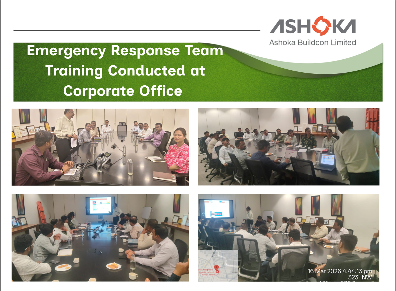 At Ashoka Business Enclave, the Corporate Office of Ashoka Buildcon Ltd., an Emergency Response Plan (ERP) awareness session and mock drill were successfully conducted to strengthen workplace preparedness.