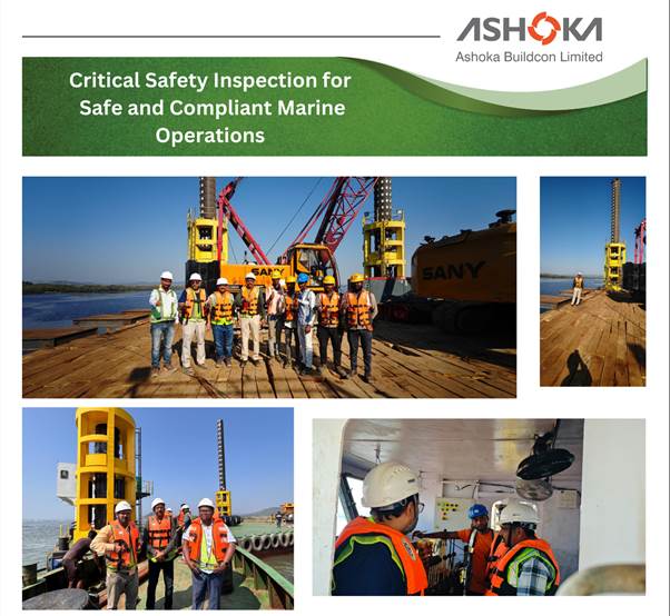 A joint Safety Inspection of the Barge at the Gailmukh and Bankot Project was carried out by PMC, Gammon India, and the Ashoka Safety Team to assess critical operational and HSE risks.