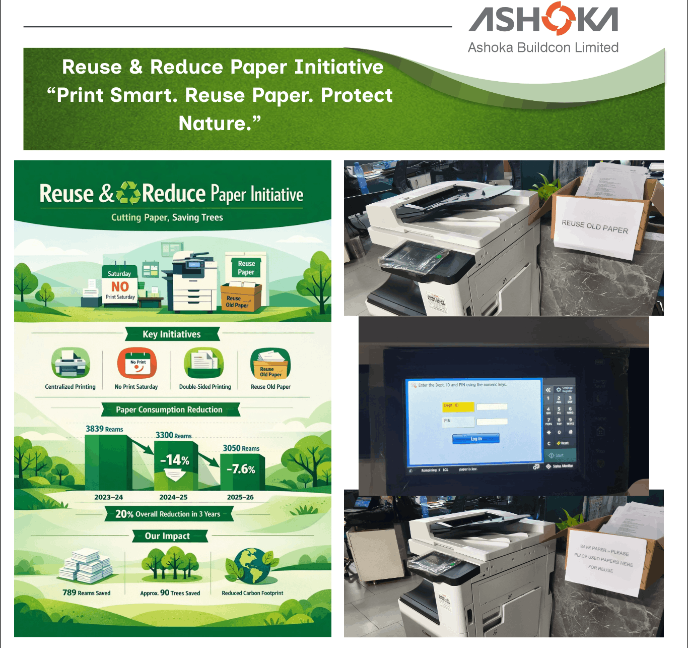 As part of continual improvement, the Corporate Office has introduced the “Reduce and Reuse Paper Initiative” to reduce paper consumption and encourage responsible use of resources.